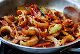 7. Ojingeo Bokkeum (오징어볶음) – Spicy Stir-Fried Squid